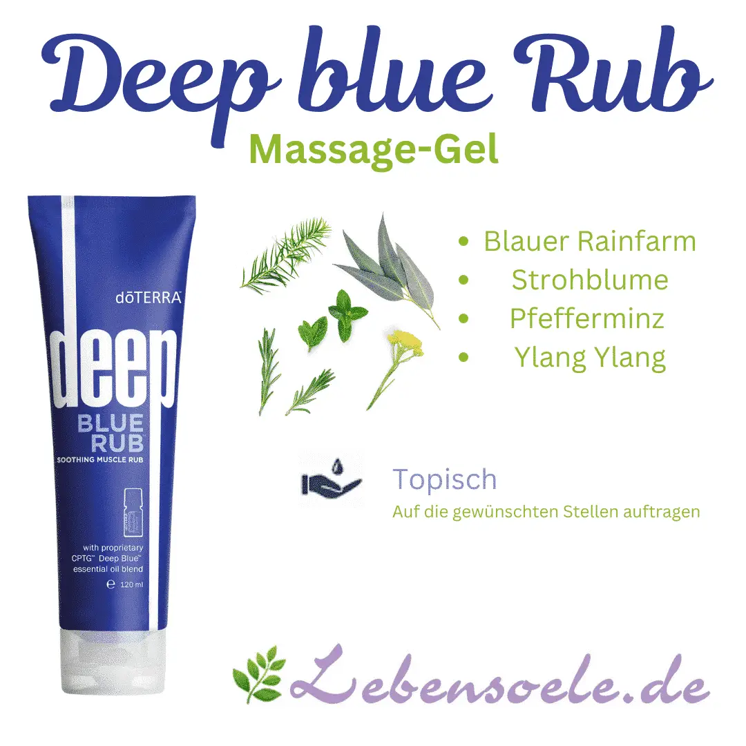 \nThe moisturizing base is quickly absorbed. In addition, your skin remains soft and supple, while greasy films are avoided. That’s why massage and sports therapists trust doTERRA Deep Blue Rub.