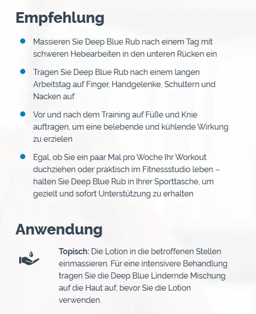 • Formulated with the Deep Blue oil blend and other powerful ingredients
