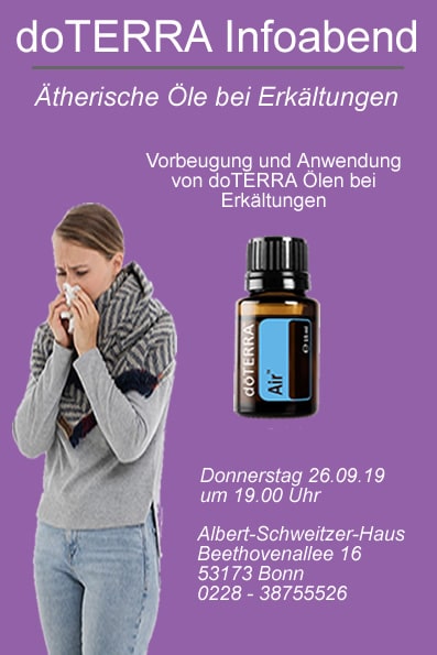 Was On Guard sonst noch alles kann, erzähle ich bei meinem nächsten DoTERRA Info Abend zum Thema Erkältungen vorbeugen mit DoTERRA Lebensölen und was kann ich tun, wenn es mich schon erwischt hat? Die Teilnahme ist kostenlos.